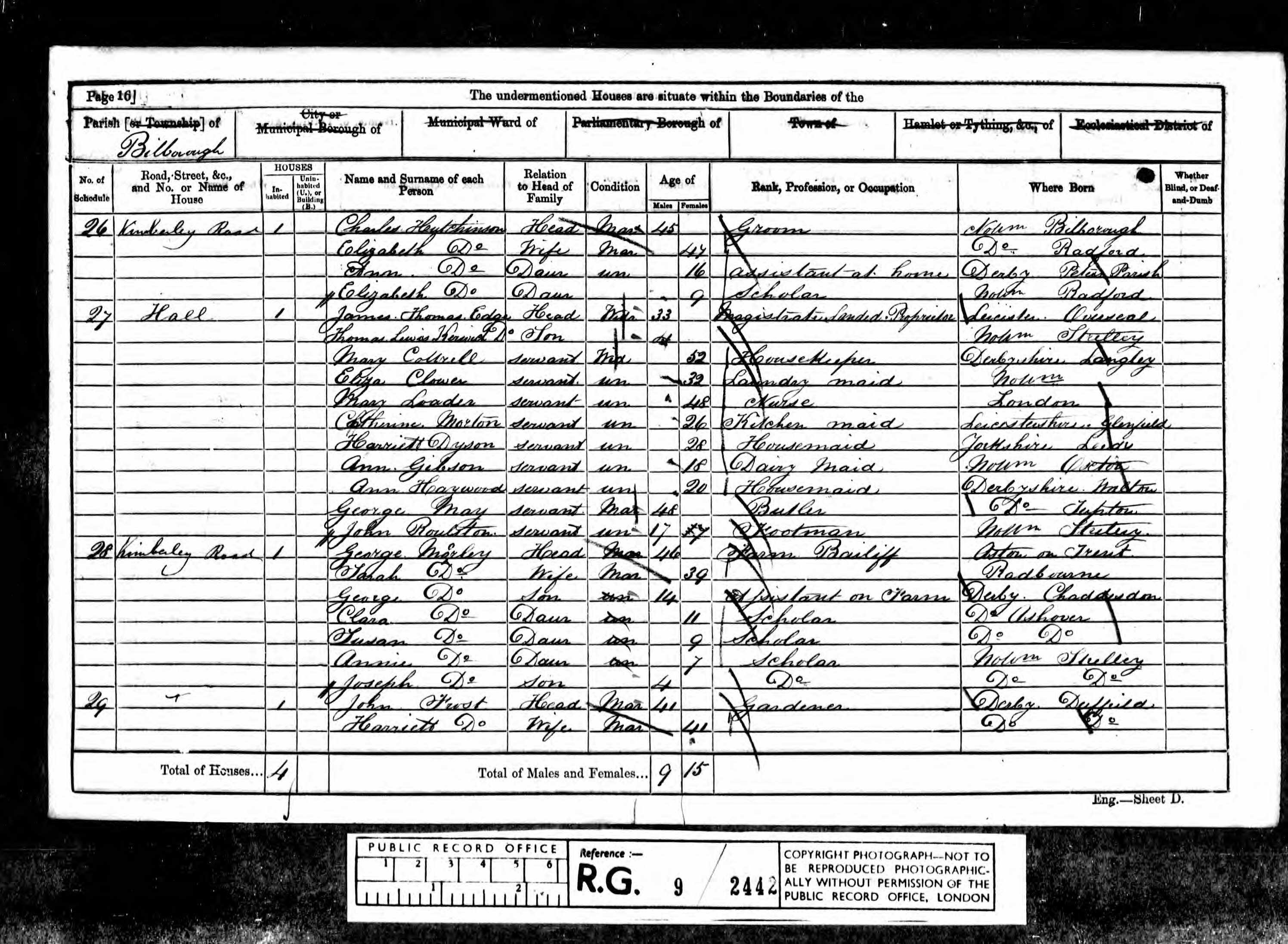 In 1861 George, Sarah and family were living at Bilborough where George was a farm bailiff at Hall Farm. By 1871 Sarah had died and George was still the bailiff.