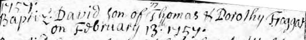 The next record we have for a Dorothy FROGGATT is the baptism of John FROGGATT to a Dorothy FROGGATT at Norbury on 16 January 1759 (being noted as "illegitimate"). As there was another Dorothy FROGGATT baptised at Ashbourne in 1729 (to John and Sarah FROGGATT) and no burials recorded for a Dorothy between 1729 and 1759, we cannot be certain which Dorothy was the mother. Dorothy the younger is preferred as her siblings were attending Norbury church by this time.