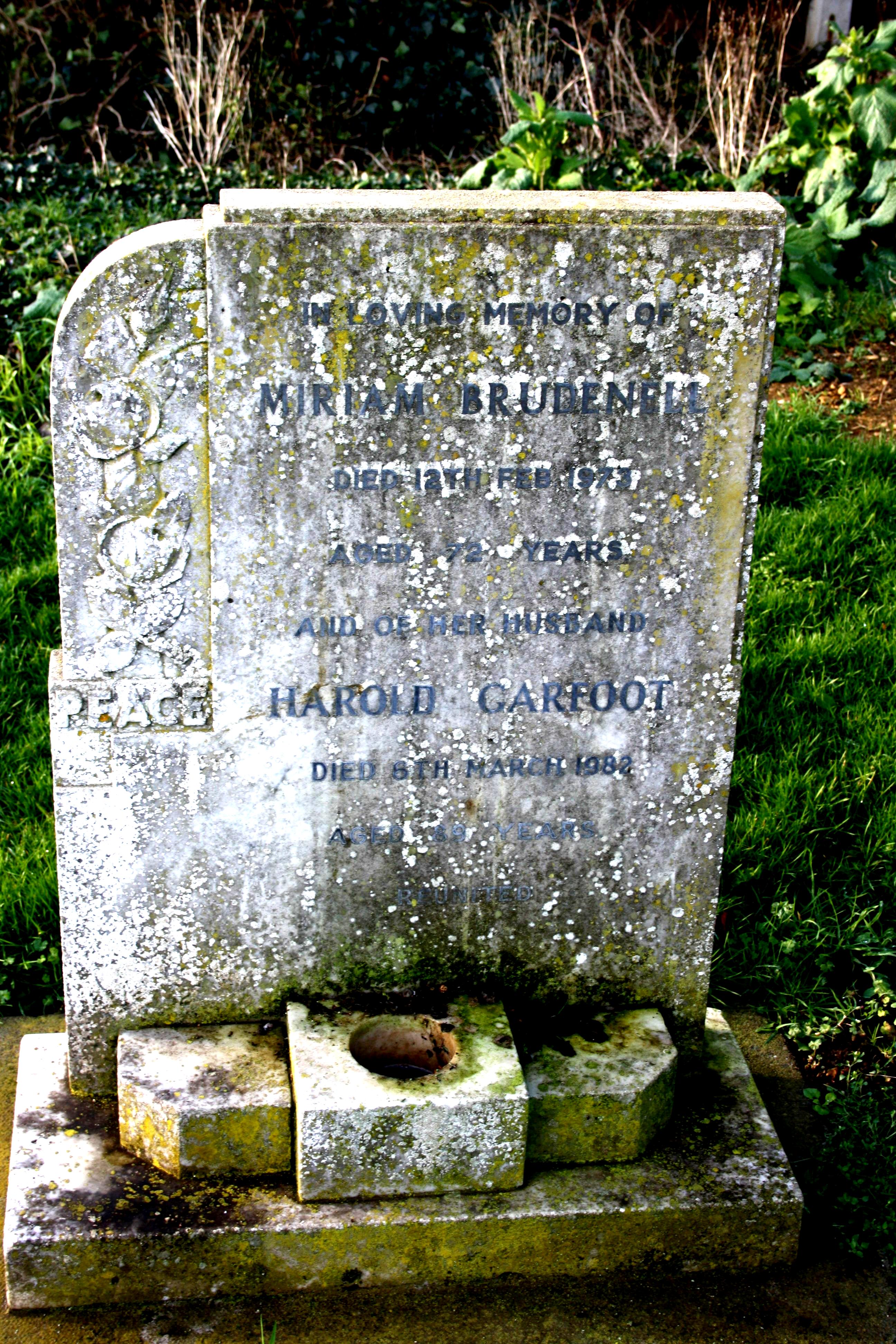 Miriam died at 53 Mill Drove, Bourne on 12 February 1973. Harold died at The Banks, Toft, Bourne on 6 March 1982. The couple were interred at the Baston Cemetery.