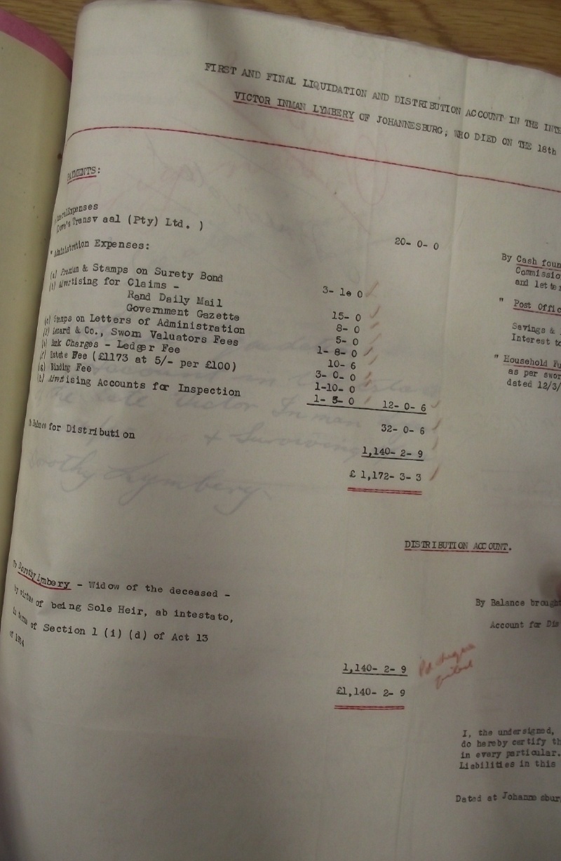 The Goodliffe Family of NottinghamThe estate papers of Victor Inman LymberyVictor Lymbery married Ada HURRY on 26 January 1900 in Notingham. Shortly after the marriage, Victor separated and travelled to South Africa. From there he filed for divorce, citing Edwin Daniel GOODLIFFE as the third party. He died in Johannesburg om 18 December 1944. Here is a copy of his estate papers.